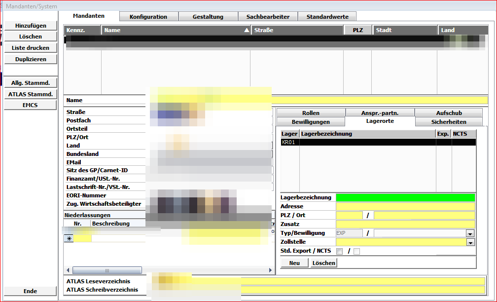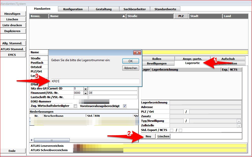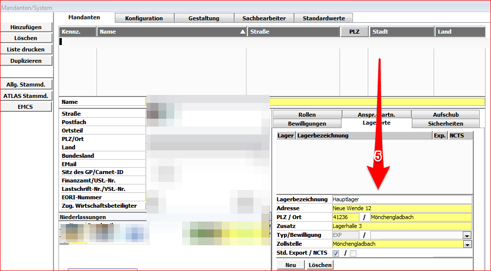 1. Im Tab Mandaten unten links auf das Tab "Lagerorte." klicken.